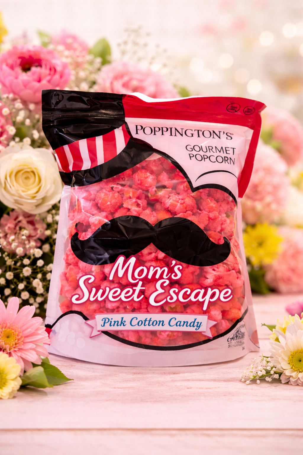 Description Poppington's Pink candy popcorn is a treat like no other. Celebrate Mothers day with this delightful treat.   Just like the old-time favorite treat, our Pink Cotton Candy Popcorn is light and airy with just the right amount of...